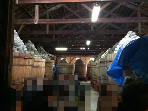 まずは工場内に入って行って味噌蔵を見学します。