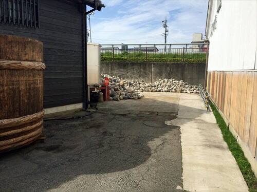 蔵から出ますと味噌を取り出した桶が置かれています。