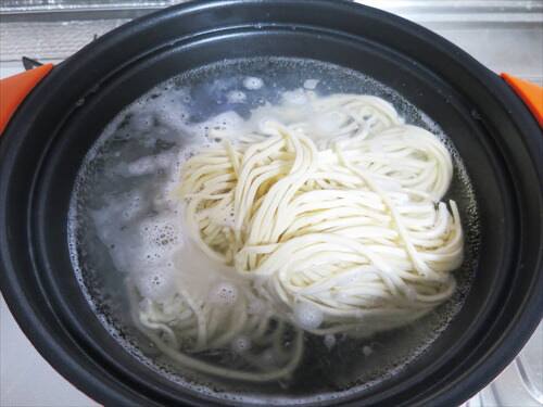作り方はとても簡単で6分間麺を茹でた後に、中に入っている鰹節の粉とスープを入れて2~3分煮込むだけです。