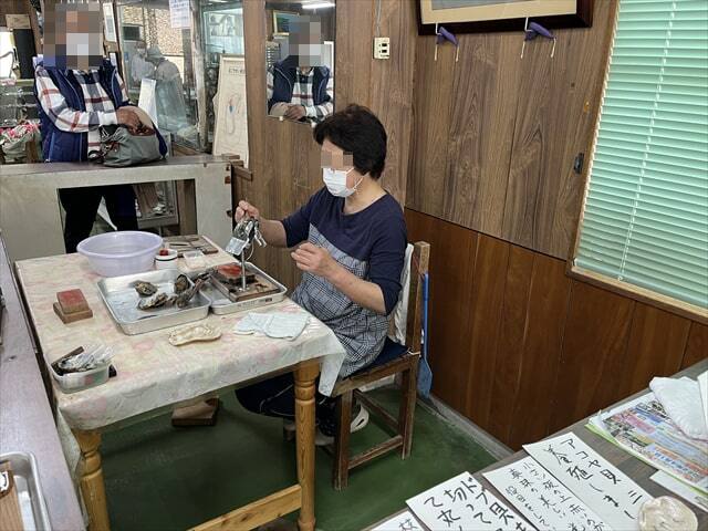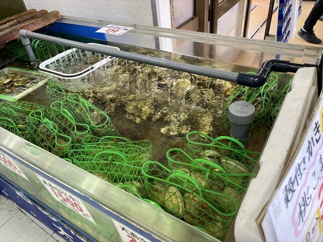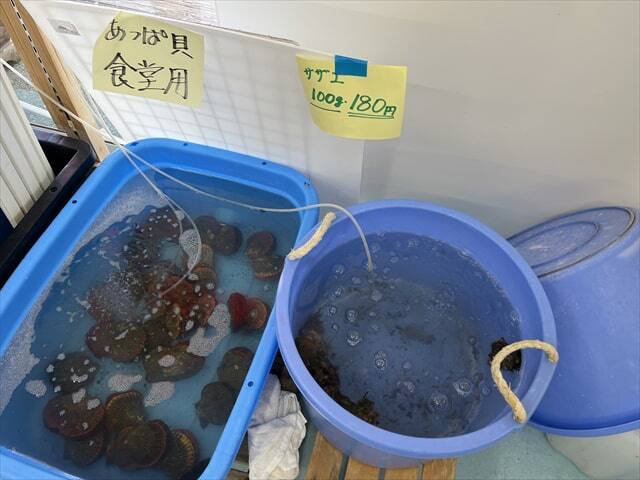 お店に入りますと左手奥にはサザエやあっぱ貝、ヒオウギ貝などが販売されていました。