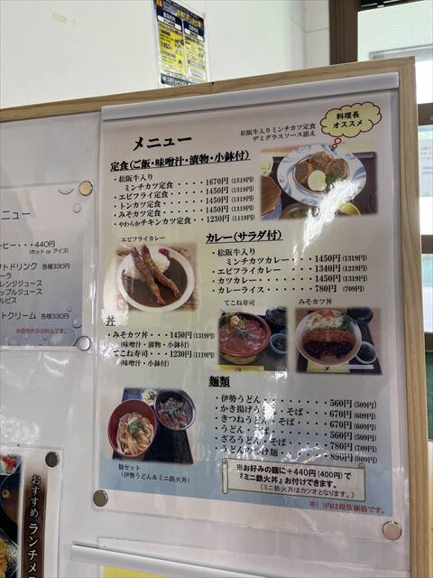 おすすめのランチメニューはトンカツ・ミソカツ定食ややわらかチキンカツ定食となっていましたので、希望とは違うなと思い、売店で紹介してもらいましたすぐ近くの志摩の杜に行くことにしました。