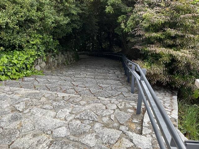 駐車場からは右手に階段の上り口もありますが、景色の良さそうなスロープの遊歩道がありましたのでそちらを登りました。