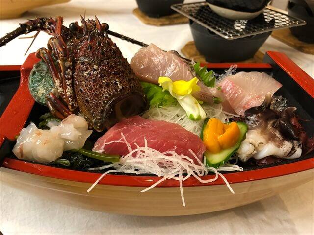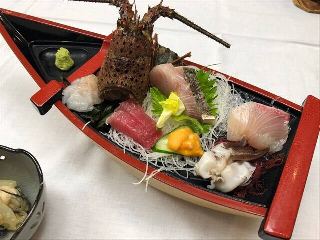 旅行会社のパンフレットでは船盛が4人前ほどの大きなものとなっていましたのでお刺身がたくさん食べることができるかなと思ったのですが、実際の各自の小舟盛りとしての量としての刺身は少ないと感じました。