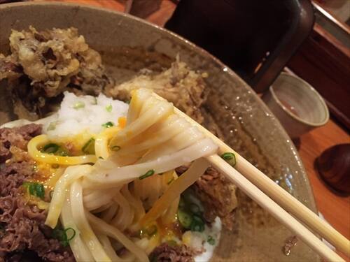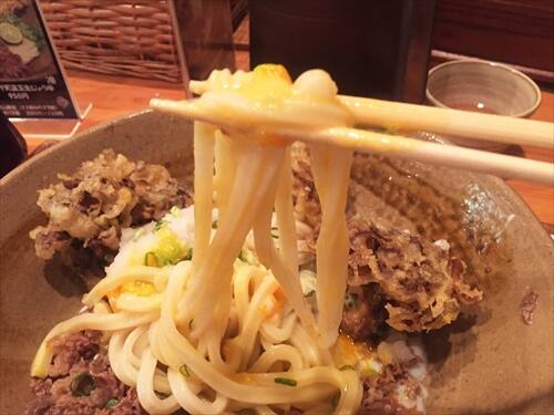 うどんのコシはモチモチでとても美味しく、温玉とからめますと美味しく頂けました。