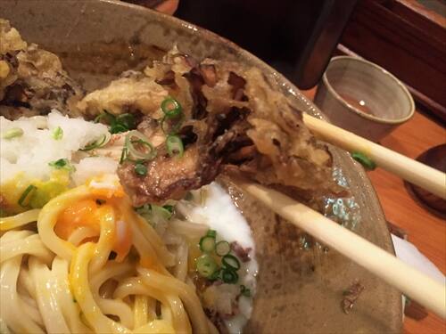 常連とおぼしき方が注文していたのですが、まいたけ天温玉生じょうゆにまいたけ天追加という方のうどんはまいたけ山盛りで美味しそうでした。