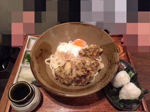 同行者は生じょうゆではなくぶっかけとして、おにぎり2個追加となりました。