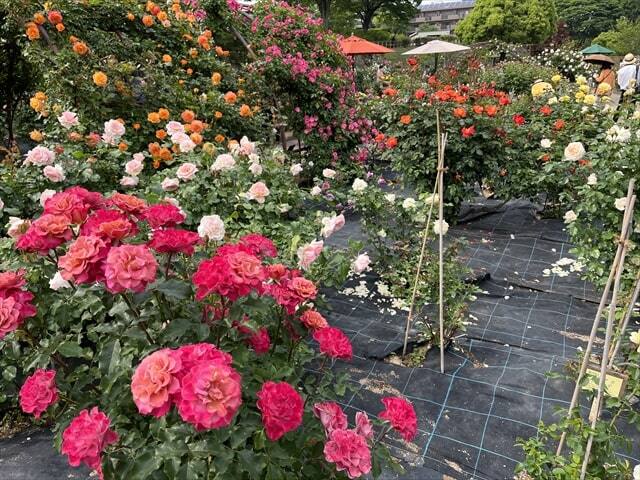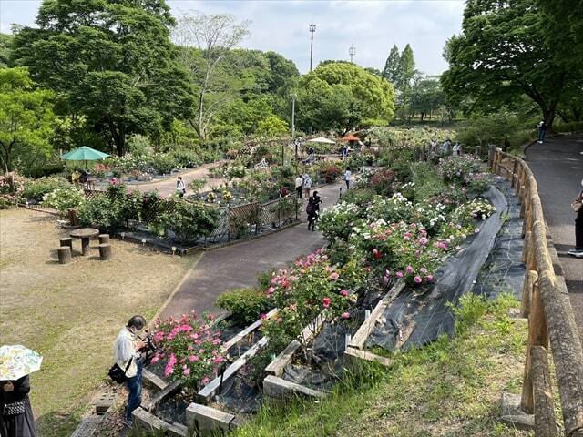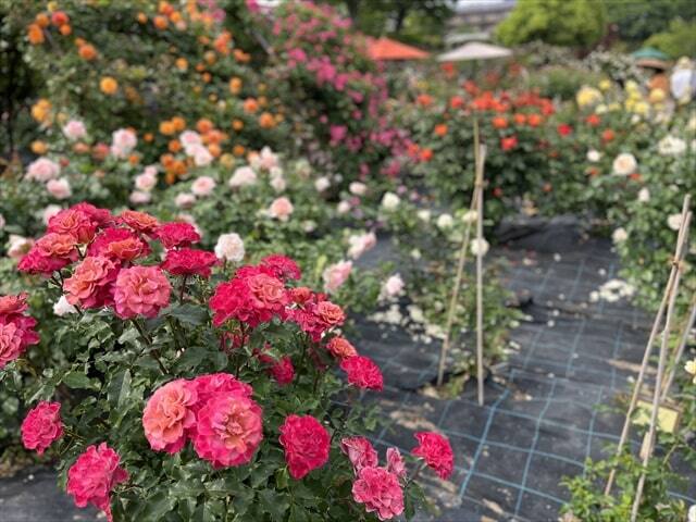 バラ園はちょうど春の季節でしたからとても賑わっていました。