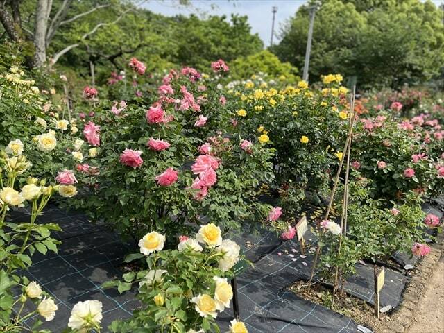 色々な種類のバラが植えられていて、色や花の違いを楽しむことができます。