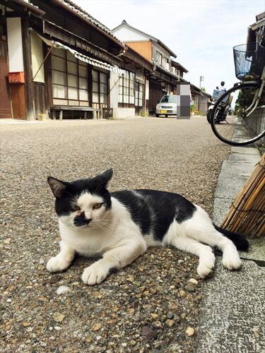 古い町並みを歩くだけなのですが、途中で関宿の主のようなネコが道路でくつろいでいました。