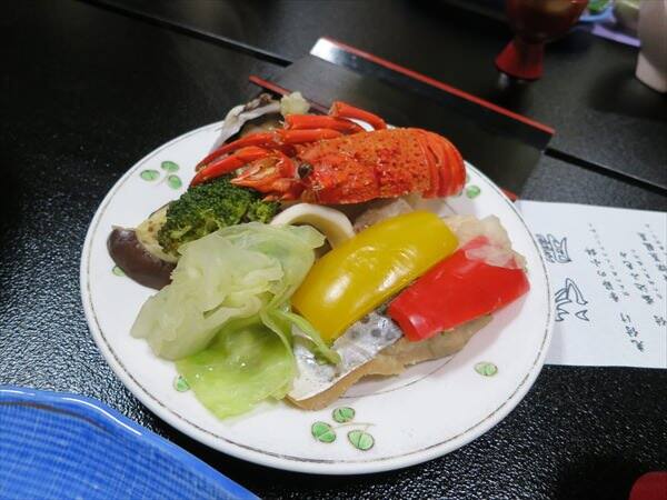 伊勢えび半身と野菜のセイロ蒸しも伊勢えびが美味しかった。