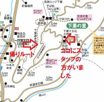 下栗からかぐらの湯に行こうとして下り道の分岐にいた方に偶然道のことを聞来ました。