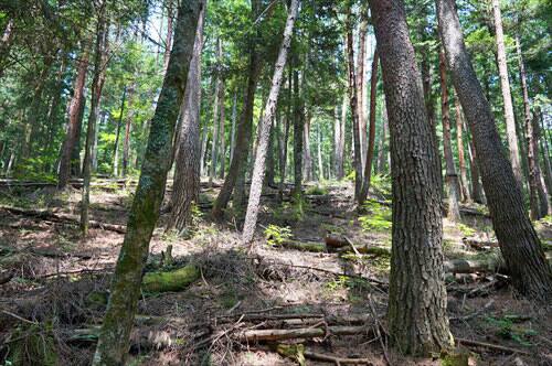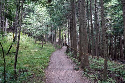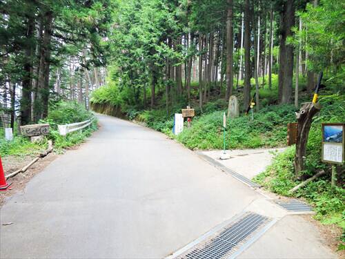 駐車場からしらびそ高原方面に行く道を左に歩いていきますとビューポイントへのトレイルへの入り口です。
