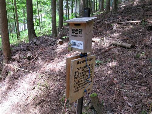 駐車料金は無料ですが、駐車場には寸志の募金箱はあります。