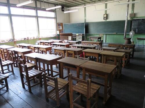中は私たちが幼い時の木造の小学校そのものの様子でした。