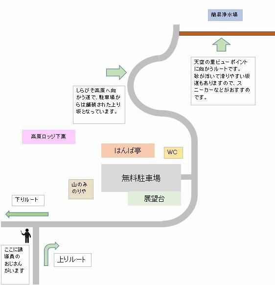 駐車場の方に聞きますと天空の里ビューポイントへの道やしらびそ高原までの道のルートは教えてくれます。