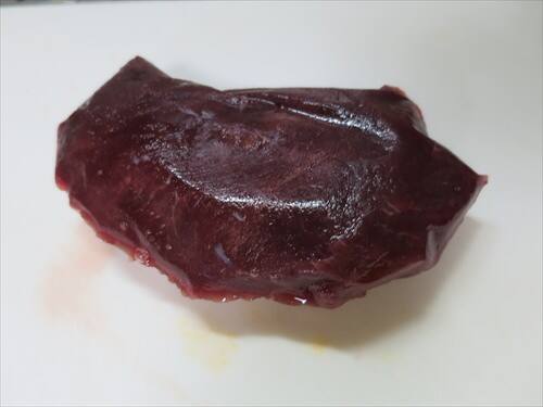 4時間経過した鹿の肉の周りは解凍され、中心部は少し凍った状態でした。