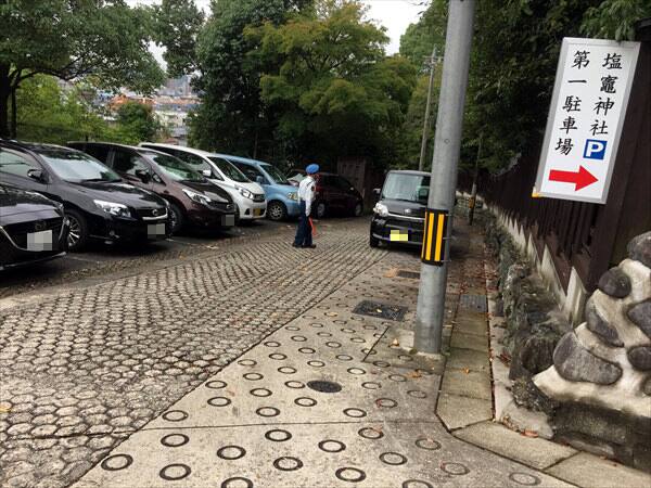 警備員が出て整理をしてくれていましたが、塩釜神社の駐車場に行くルートが2つあり、こちらの坂道に両方とも車が並んでいました。