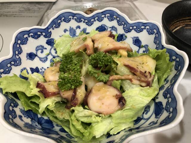これをレタスの上に盛ればおいしい海鮮サラダの出来上がりです。