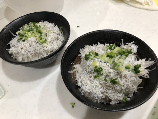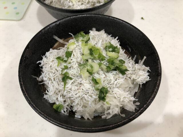 今回は大葉がありませんでしたので大根とネギだけでのシラス丼となりました。