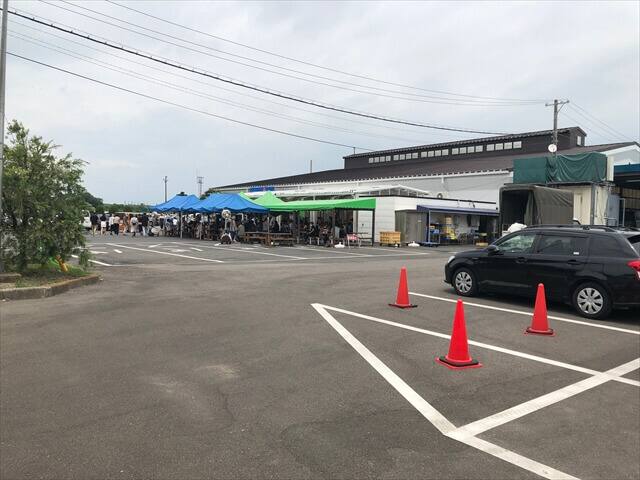 私たちが魚太郎本店に行ったのは祝日の午前11時頃でしたが、店の前近くの駐車場は満車で、少し離れた舗装されていない駐車場まで誘導されました。