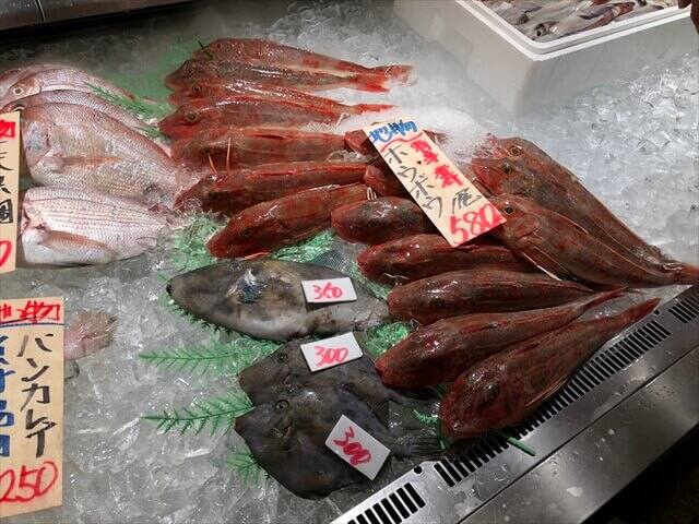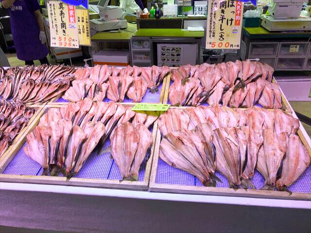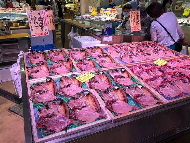 その他にも真あじひらきやほっけ開き干し、干物盛り合わせ、金目鯛もありました。