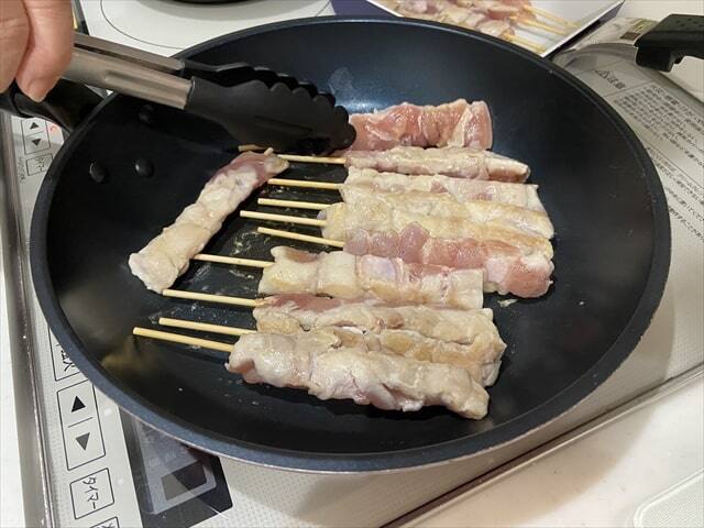 焼き鳥の肉の中心までしっかり解凍できましたので、フライパンで美味しい焼き鳥を作ることができました。