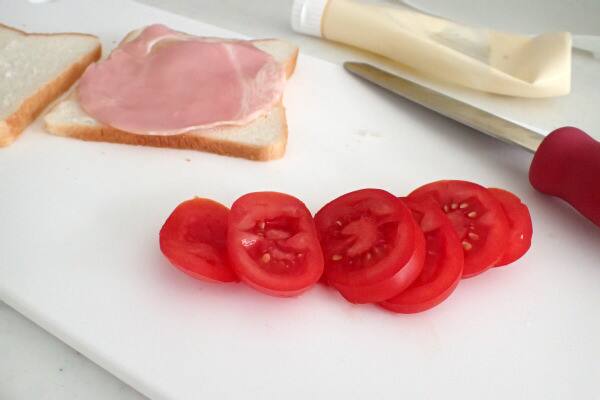 4センチほどの小さなトマトもサンドイッチ用に簡単に薄く切ることができます。