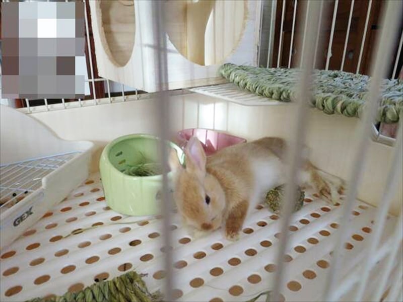 家に着きましたらすぐに子うさぎをゲージの中に入れてあげますと、振動が無くなった事からか少し落ち着いた様子となりました。