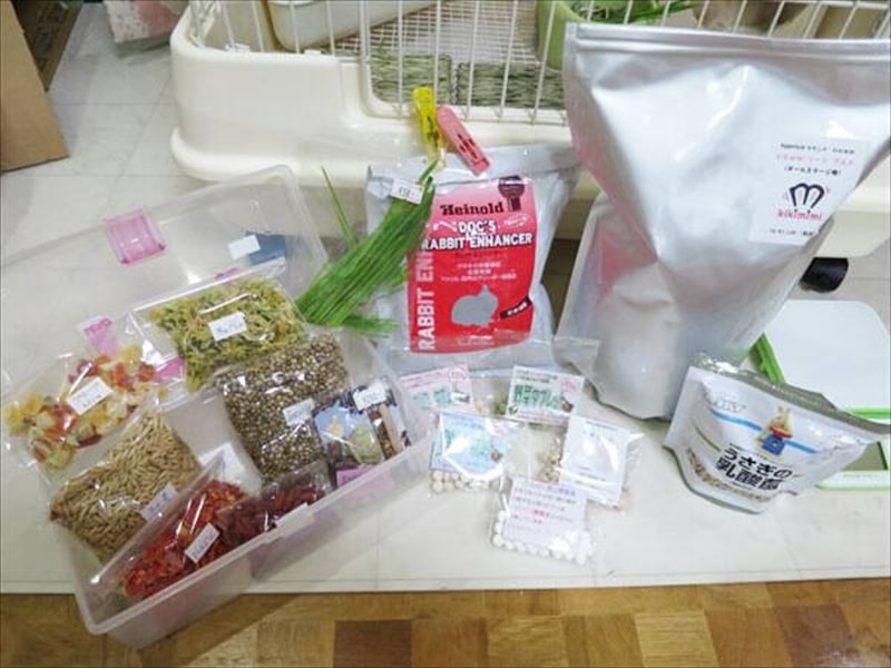 お店でもうさぎの飼育スタートセットとして、これらのサプリメントを含んだエサのセットが販売されていましたので購入しました。