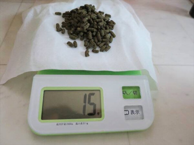 たとえば1ヶ月ほどのうさぎの晩のエサはエンハンサー4グラムとペレット11グラムで、15グラムとすると良いのです。