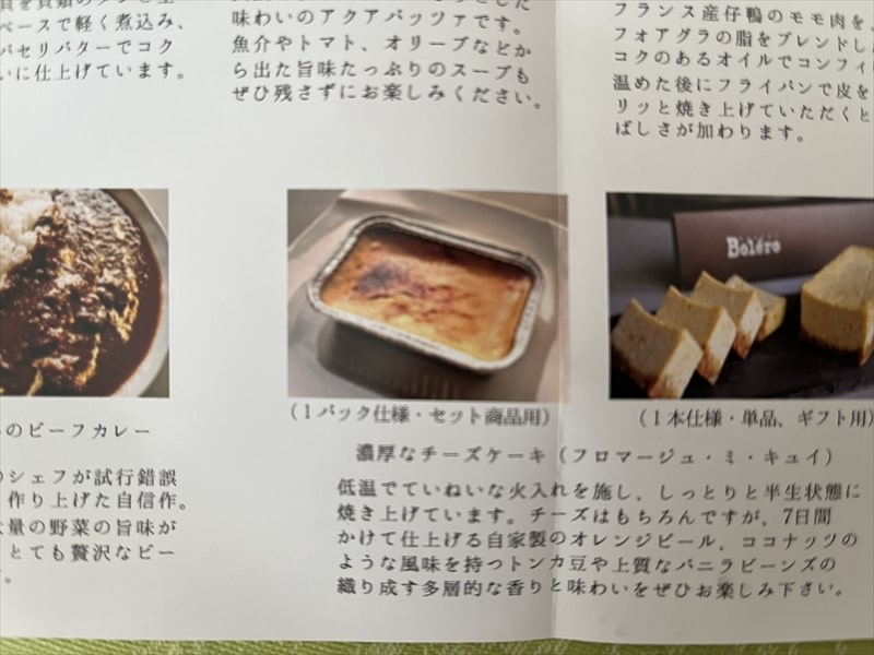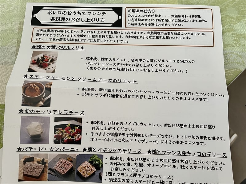 わが家はお取り寄せのフレンチなどのフルコースでレザンファンギャテやグルメソムリエ、シェシュシュのコースを頂きましたが、今回は別のレストランのものを頂きたいのでビストロボレロの厳選コースセットを注文しました。