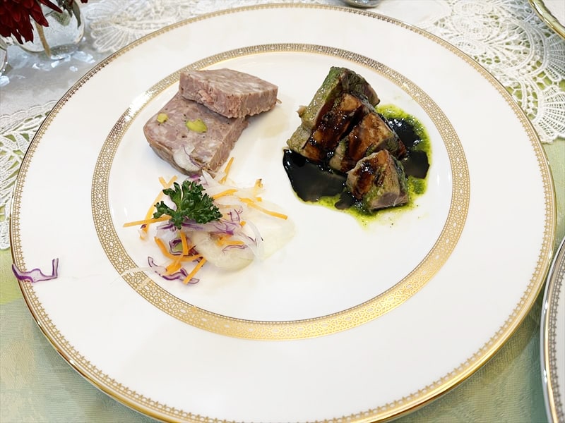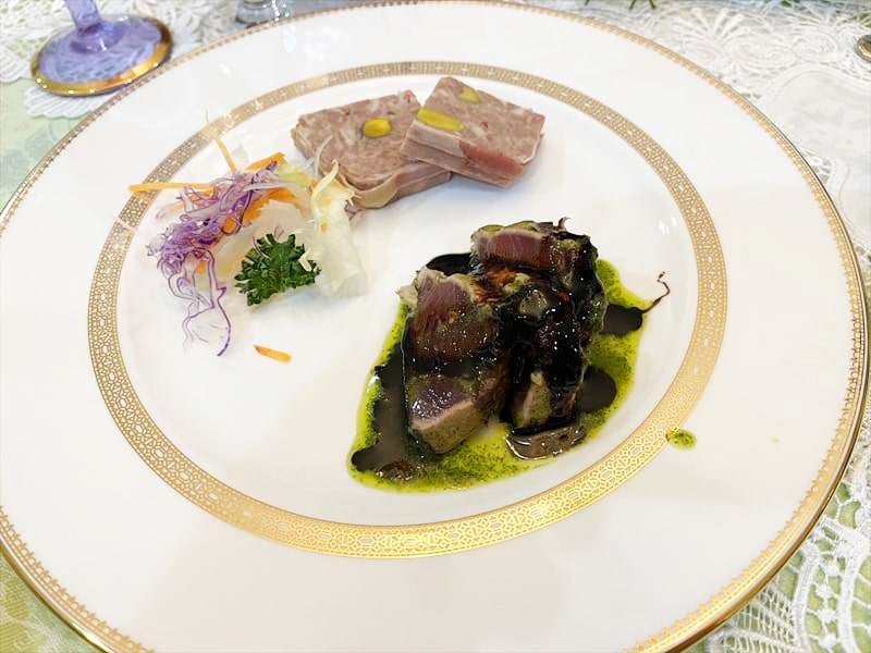 前菜としてパテドカンパーニュと鰹のマリネは1皿に盛りました。