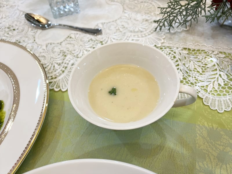 アサリとジャガイモのポタージュは濃厚でしたが、こちらは冷やしてビシソワーズの様に頂いても良いかもと思いました。