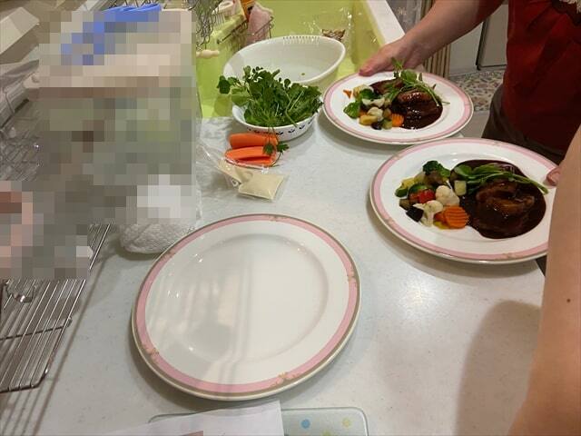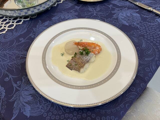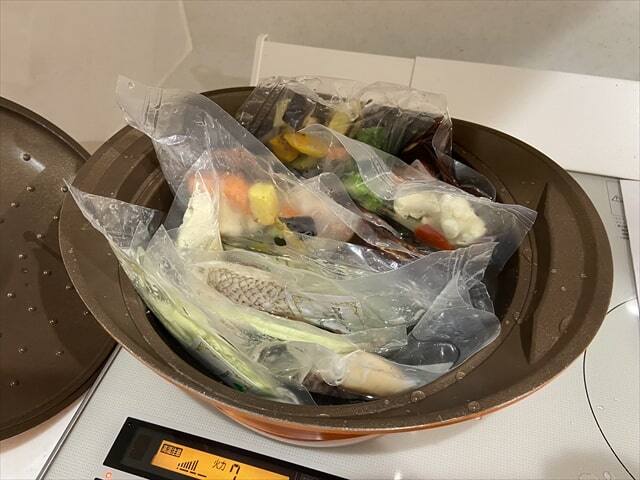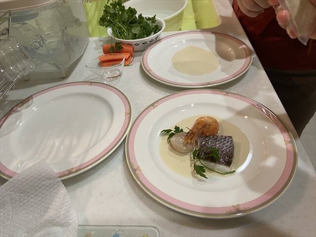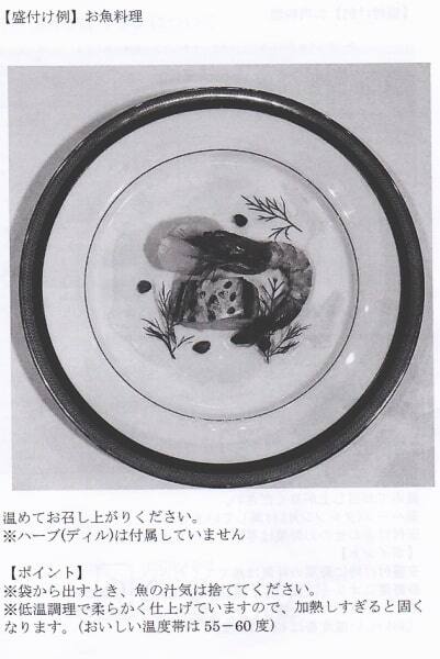自宅であれば盛り付けは非常に簡単なので、魚料理や肉料理は食べる直前にお湯から出して盛り付けて食べた方が良いかなと思いました。