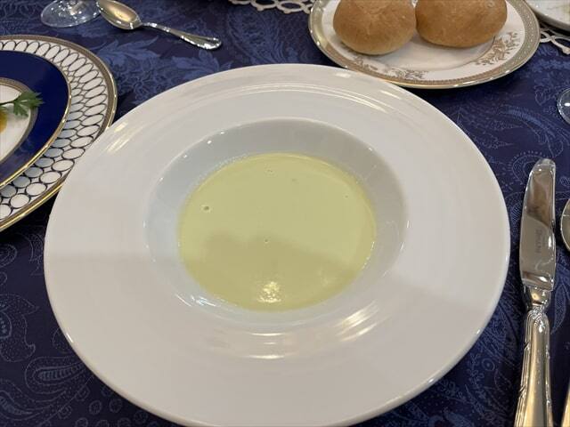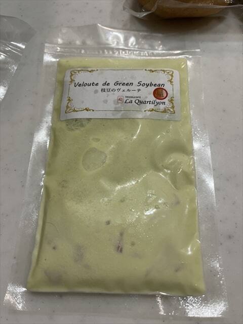 スープは枝豆のヴェルーテで、枝豆の美味しさが楽しめました。