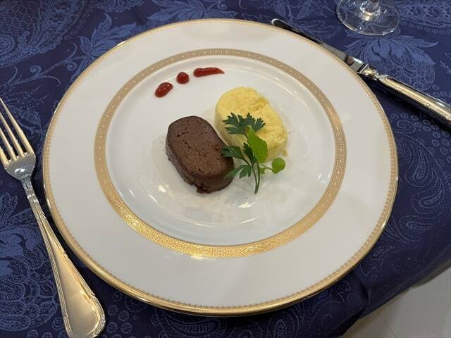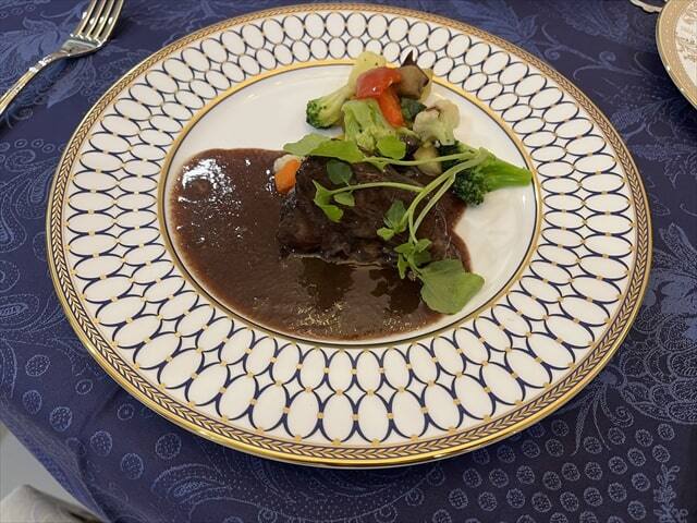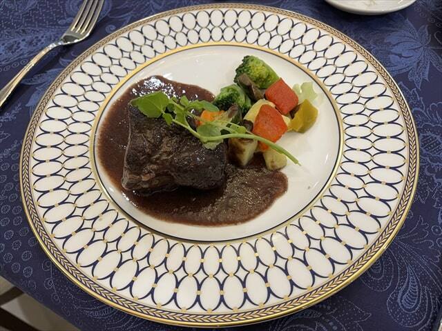 そしてメインは極上の特選黒毛和牛【仙台牛】A5ランク、伝統の赤ワイン煮込み、野菜のロティを添えてです。