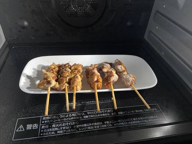 冷凍焼き鳥をさらに美味しく食べる方法はないかと、電子レンジで加熱した焼き鳥をオーブントースターで焼いてみました。