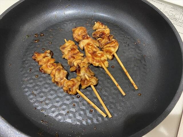 冷凍焼き鳥をより美味しく食べようとフライパンで焼いてみる事にしました。