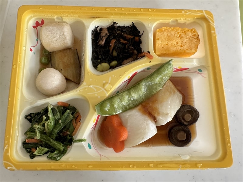 副菜は里芋、なすのおろしあんかけ、ひじきの煮物、厚焼き玉子、ほうれん草のごま和えとなっています。