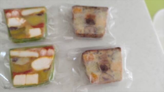 テリーヌ・ブイヤベースはかに、えび、いかの魚介類のブイヤベースの味をテリーヌで楽しめるものでした。