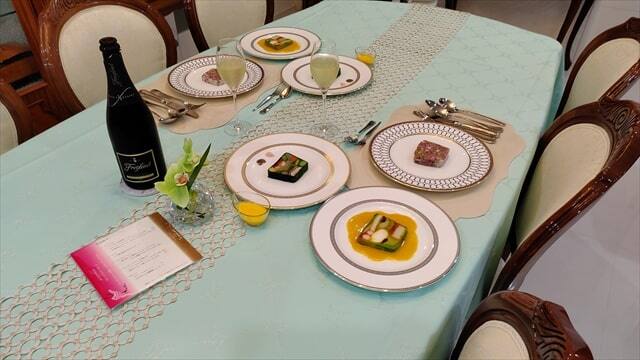 一度にコース料理をお皿に盛ってしまいますと冷めてしまいますので、前菜を食べ終わりましたらスープを皿に盛り、飲み終わりましたらメインディッシュをお湯から出して盛り付ければ温かい状態で食べることが出来ます。