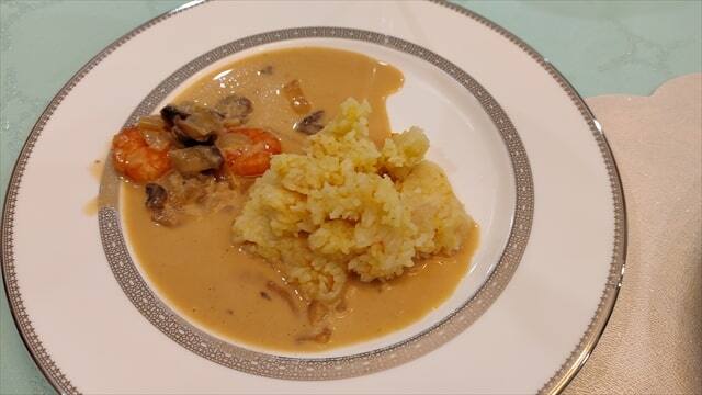 そしてメインディッシュ(ご飯もの)のビーフ・ストロガノフ、バターライス付と海老のクリーム煮、バターライス付を頂く時にはお腹いっぱいでほとんど食べることが出来ませんでした。