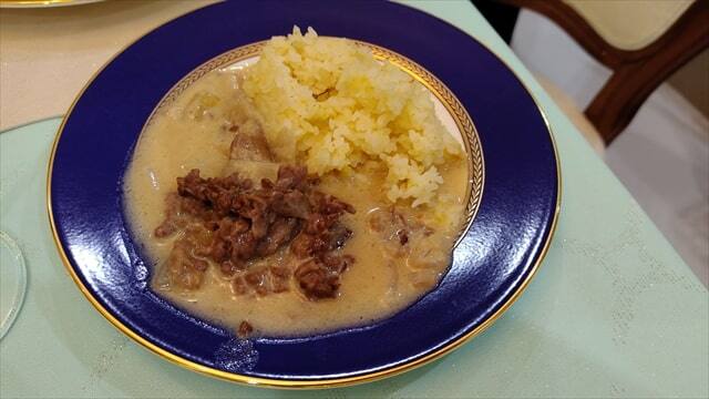 ・ビーフ・ストロガノフ、バターライス付