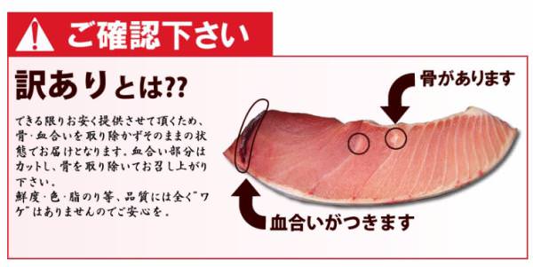 訳ありのトロを買おうという方で素人の方でしたら、多少高く感じるかもしれませが簡単にカットしてほとんどが食べられるものをお勧めだと思います。