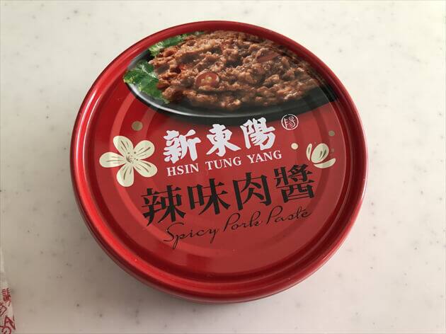 ネギや肉などを入れると良いことが書かれていましたので思い出したのが一緒に頂いた辣味肉醤の缶詰です。