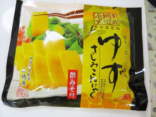 ゆずの刺し身こんにゃくはサラダにもお勧めとなっていましたので、野菜スティックと共に食べれば良いおつまみになると思います。