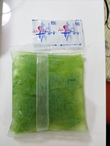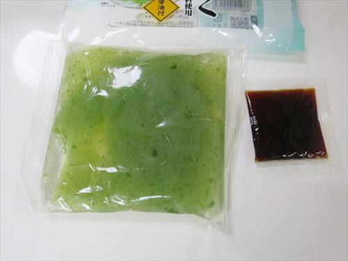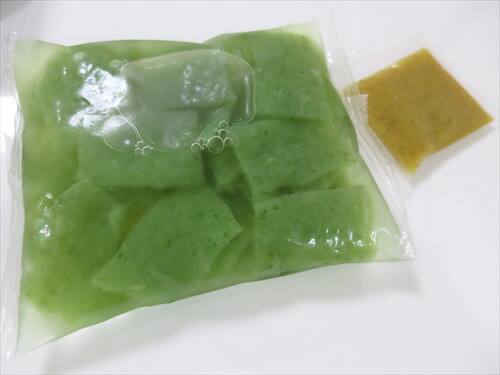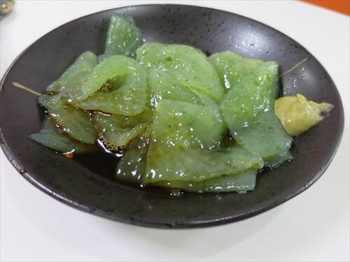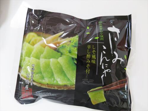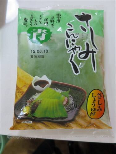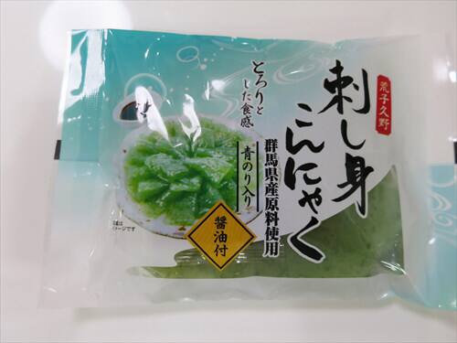 同じ会社の青のり入りの刺し身こんにゃくですが、こちらは普通です。