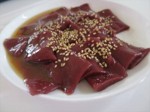ちなみにレバ刺しのタレの作り方は「ごま油1、おろしにんにく1、酒2、醤油1、キムチソース1」の割合で混ぜるだけです。