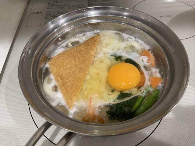冷凍うどんを入れて煮立つ前に卵を入れればよりおいしく食べることができるのではないでしょうか。